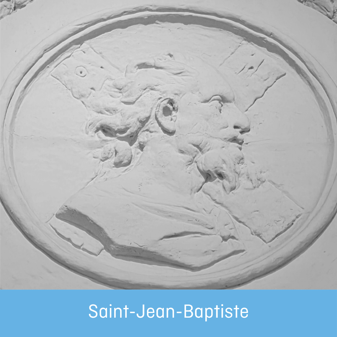 Lors de la rénovation, l’architecte a souhaité préserver l’esprit du lieu. Parmi les éléments conservés, les huit médaillons sculptés qui surmontent encore aujourd’hui les portes des anciennes cellules monastiques.