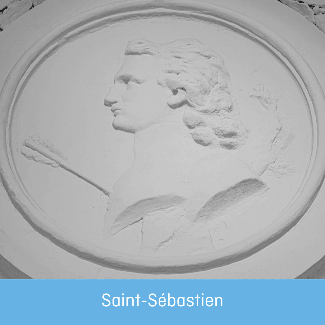 Saint Sébastien, transpercé de flèches, symbole de persévérance.