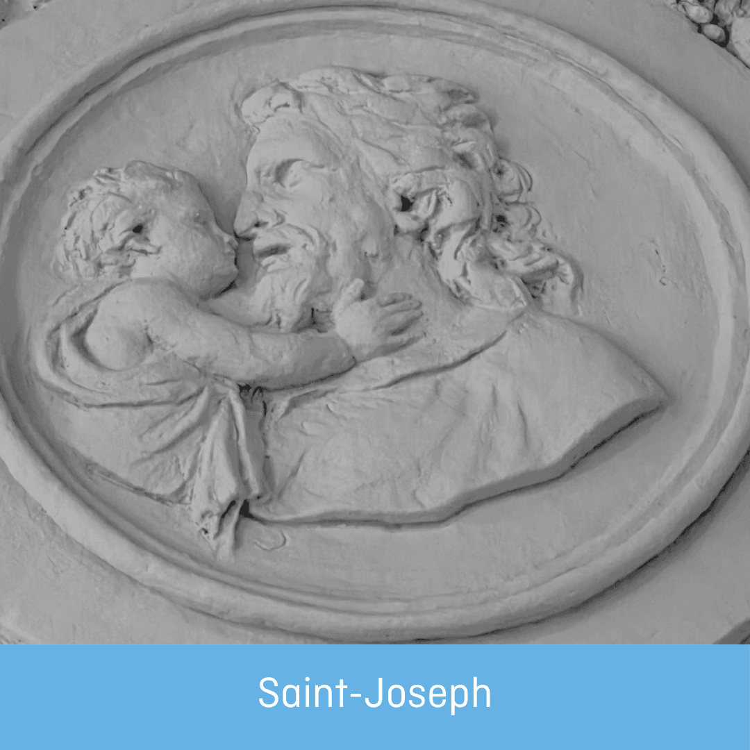 Saint Joseph, tenant l’enfant Jésus dans ses bras.