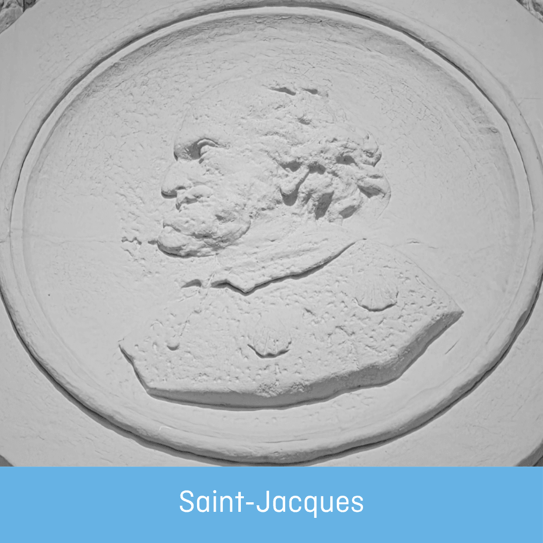 Saint Jacques, reconnaissable à ses coquilles de pèlerin.