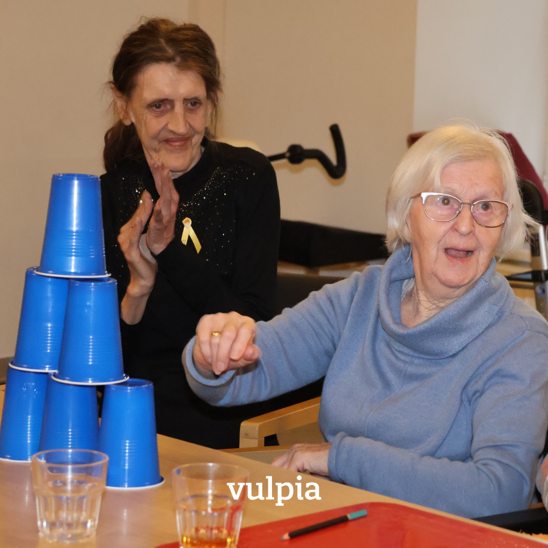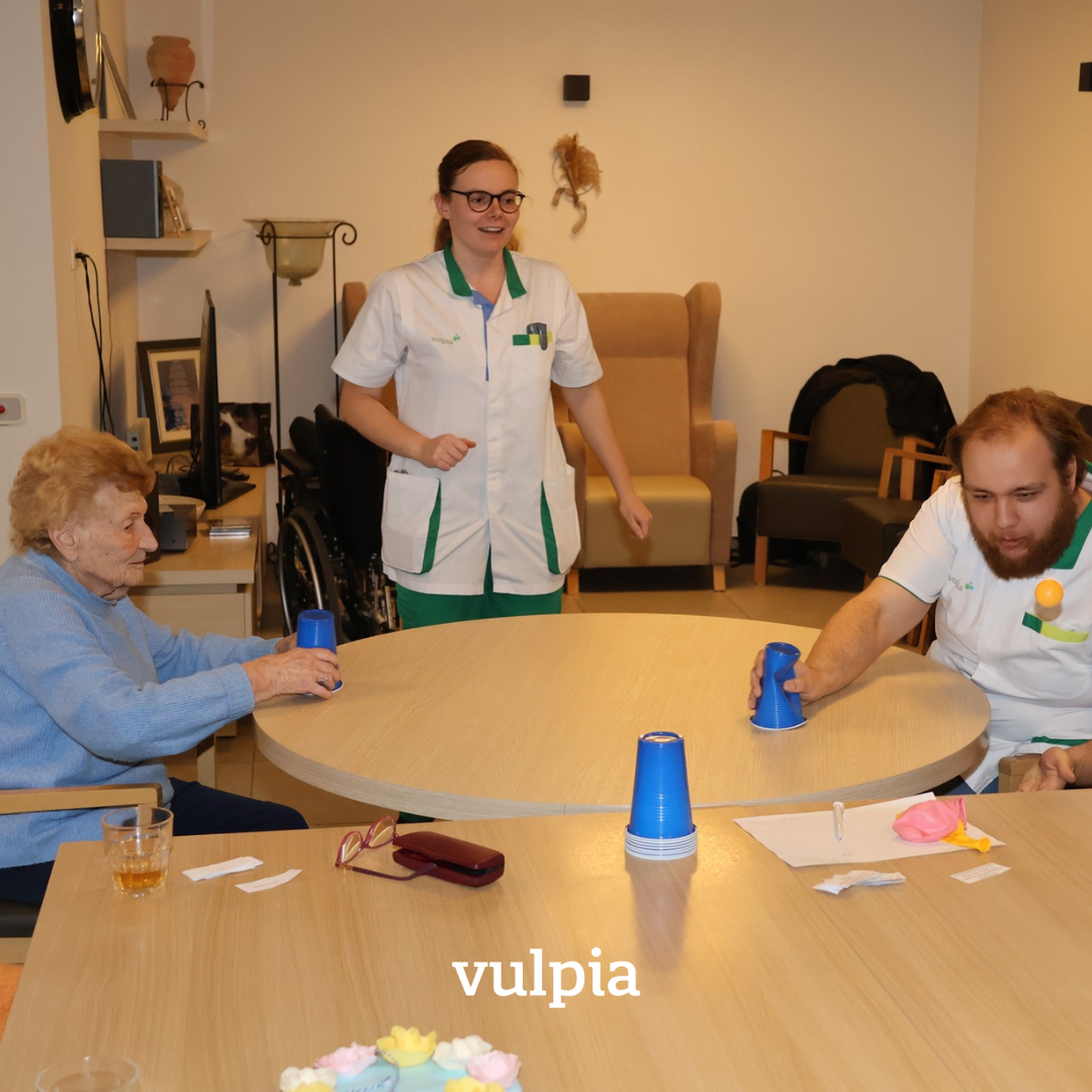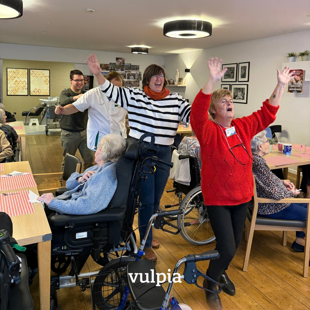 Tijdens de Week van de Ouderen pakte ons huis Vulpia De Linde (Mechelen) uit met een bijzonder initiatief: een heuse Strijd der Generaties, waarin twee medewerkers het opnamen tegen de bewoners. Het werd een vrolijke en spannende competitie, opgebouwd uit drie onderdelen: een quiz, een ronde Durven of Doen en het spel Zing de Hit.
