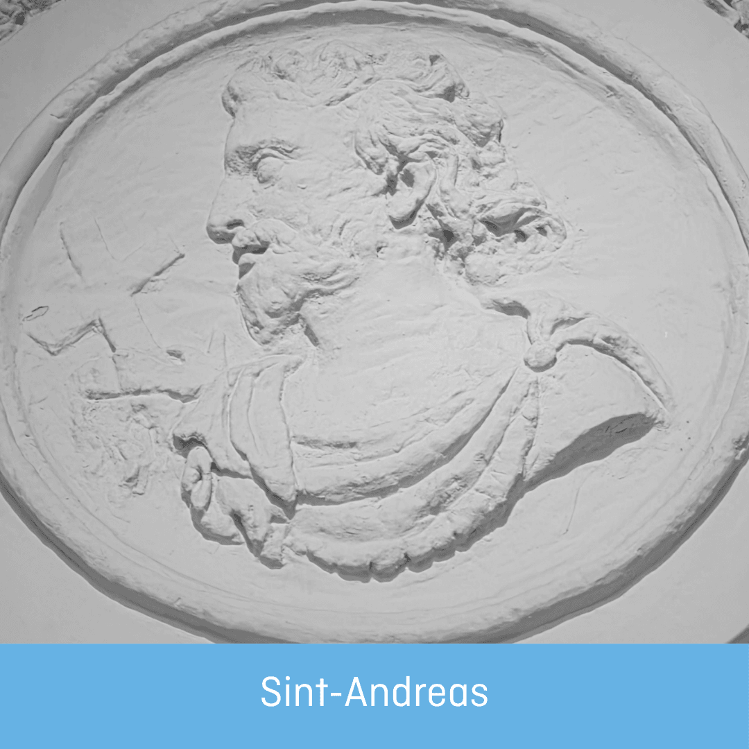 Sint-Andreas met zijn kruis in X-vorm.