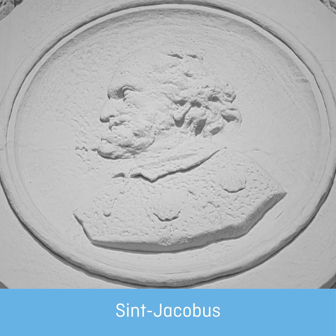 Sint-Jacob, herkenbaar aan de pelgrimsschelpen op zijn mantel.