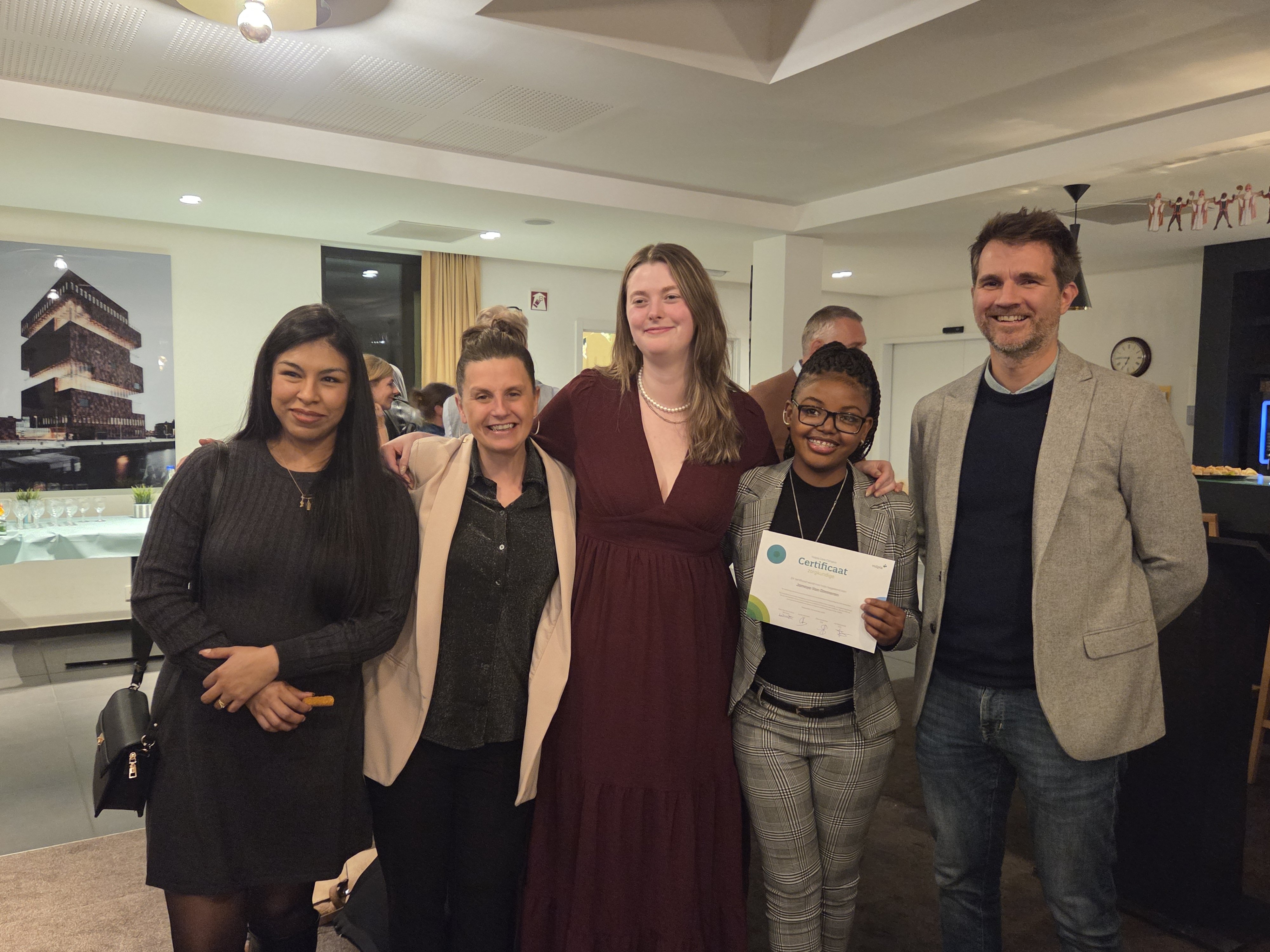 In totaal kregen 13 medewerkers van verschillende Antwerpse Vulpia-huizen (Arthur in Antwerpen, Aan de Kaai en De Nieuwe Kaai in Turnhout, De Linde in Mechelen, Herenhof in Lier en Halmolen in Zoersel) hun felverdiende attest.