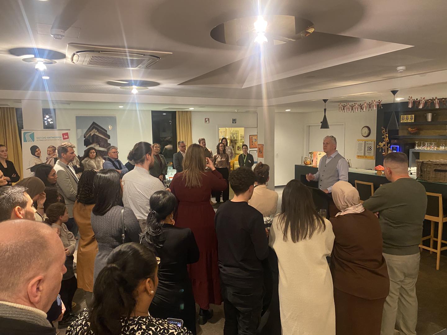We mochten ook hoog bezoek verwelkomen: Eddy Hancké, directeur van CVO Antwerpen, en Schepen Nabilla Ait Daoud, bevoegd voor Onderwijs, Personeel, Kinderopvang, Sociale Economie en Integratie en Inburgering.