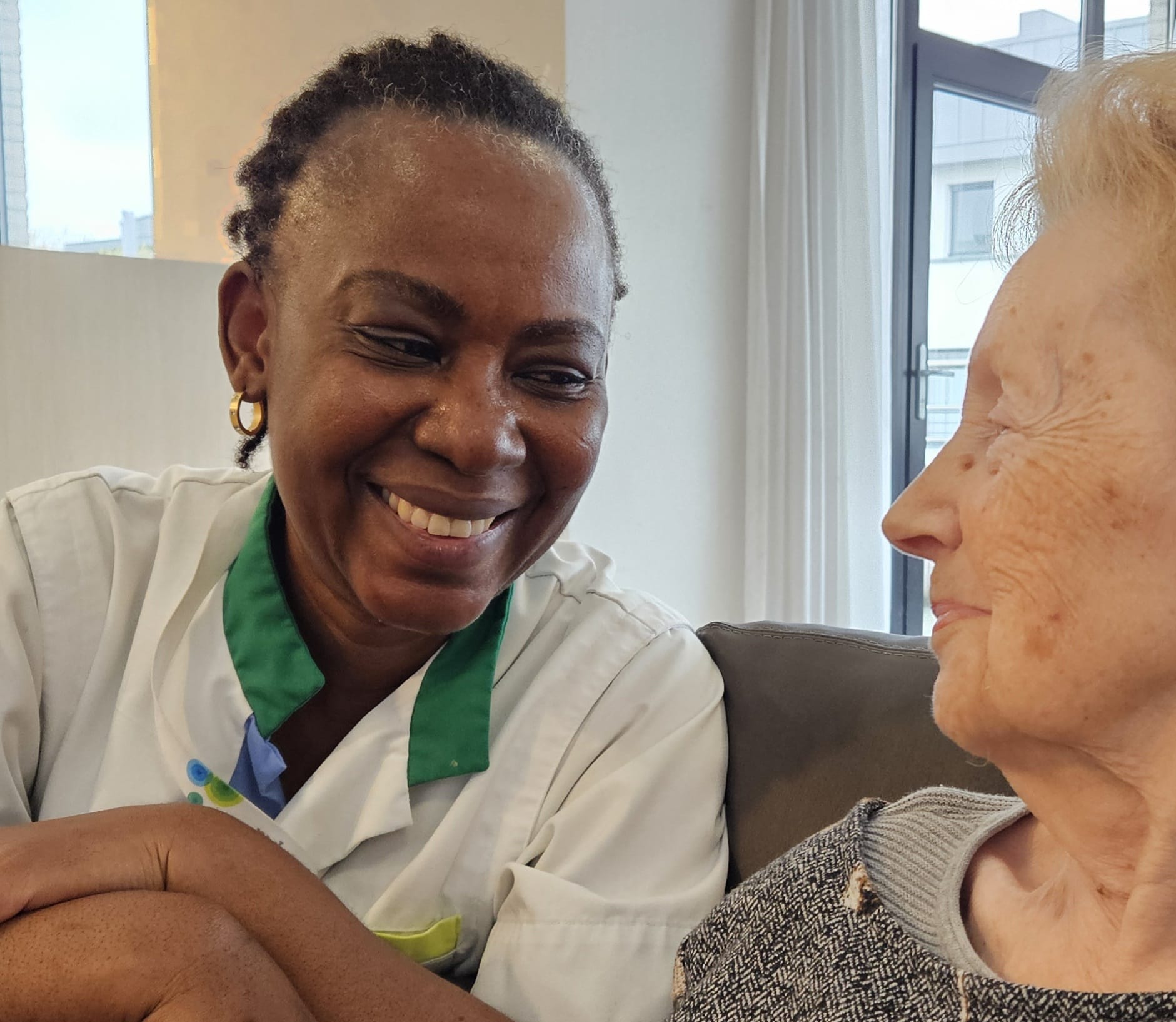 Gisèle werkt in ons woon- en zorghuis Clos Bizet. Ze is moeder van vijf dochters, grootmoeder van vier kleinkinderen en zorgt ook voor haar familie in Congo. Haar verhaal toont de enorme veerkracht van vrouwen die werk, gezin en mantelzorg combineren. Het is haar verhaal, maar tegelijk heel herkenbaar voor veel vrouwen in gelijkaardige situaties: de zorg stopt nooit.